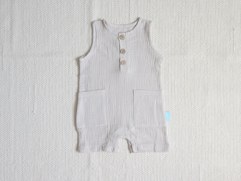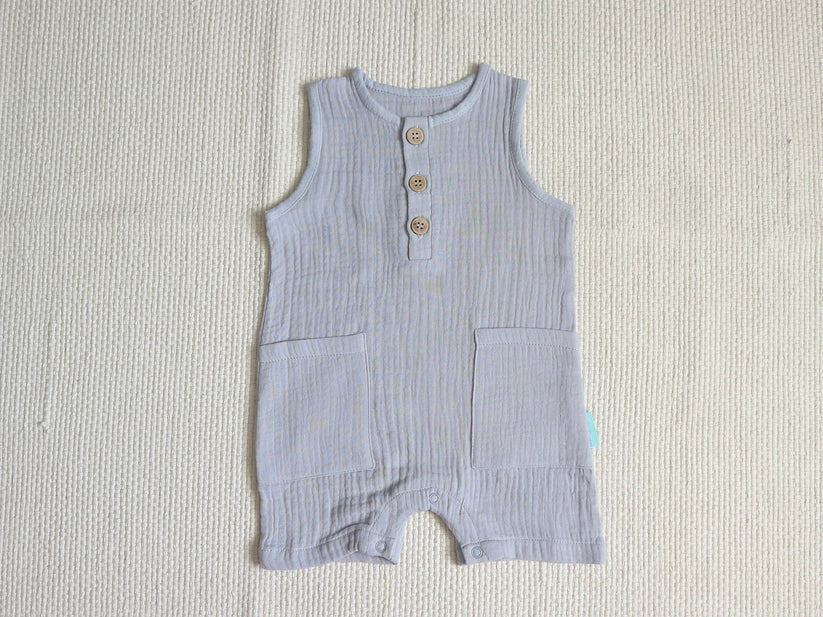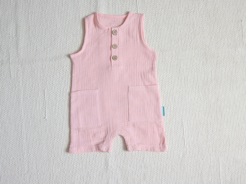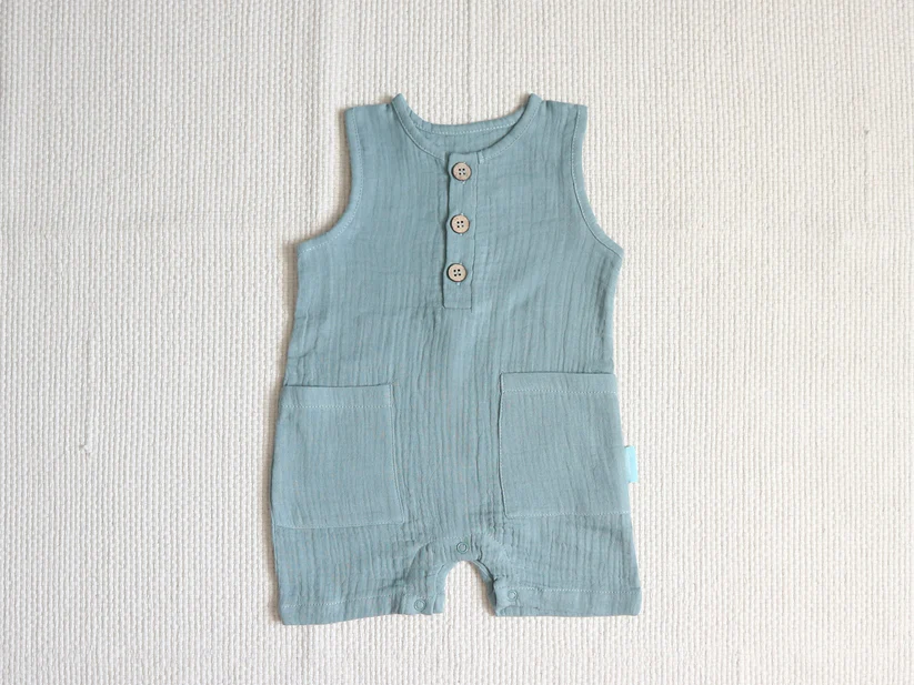 - Muslin romper in blue/teal for boy and cream/pink for girl in 0-3/3-6 months